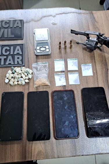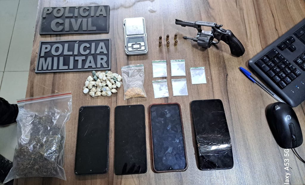 Diante da situação, Anderson Reis Mota Martins foi preso em flagrante pelos crimes de porte ilegal de arma de fogo de uso restrito e tráfico de drogas, sendo conduzido à Delegacia de Polícia Civil para a realização dos procedimentos legais cabíveis.