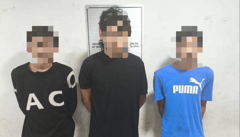Diante dos fatos, os três suspeitos foram conduzidos à Delegacia de Polícia Civil, juntamente com todo o material apreendido, para os procedimentos legais cabíveis.De acordo com as informações repassadas, a equipe realizava patrulhamento de rotina quando avistou um indivíduo em atitude suspeita, identificado pelas iniciais K.R.S.O., que ao perceber a presença da viatura tentou fugir para o interior de uma residência.